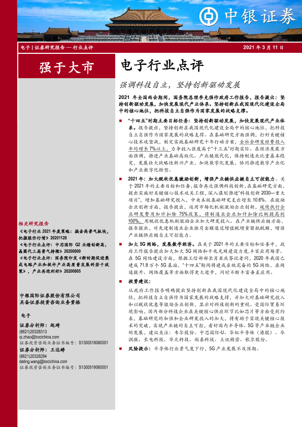 【中银证券】【20210311】电子行业点评:强调科技自立,坚持创新驱动发展-4页