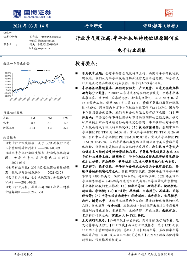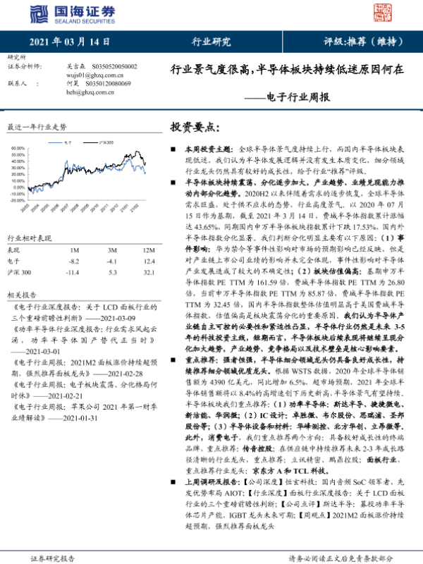 【国海证券】【20210314】电子行业周报:行业景气度很高,半导体板块持续低迷原因何在-19页