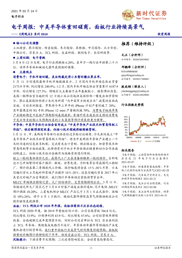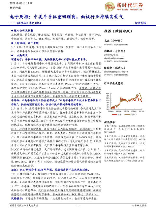 【新时代证券】【20210314】电子周报:中美半导体重回磋商,面板行业持续高景气-19页