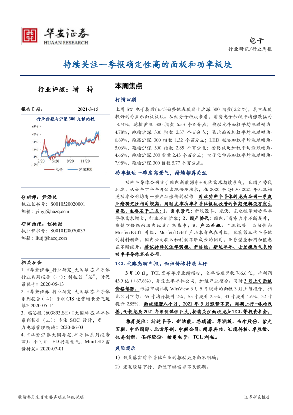 【华安证券】【20210315】20210315-华安证券-电子行业周报:持续关注一季报确定性高的面板和功率板块-17页