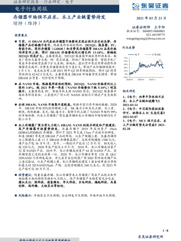 【东吴证券】【20210321】电子行业周报:存储器市场供不应求,本土产业链蓄势待发-8页