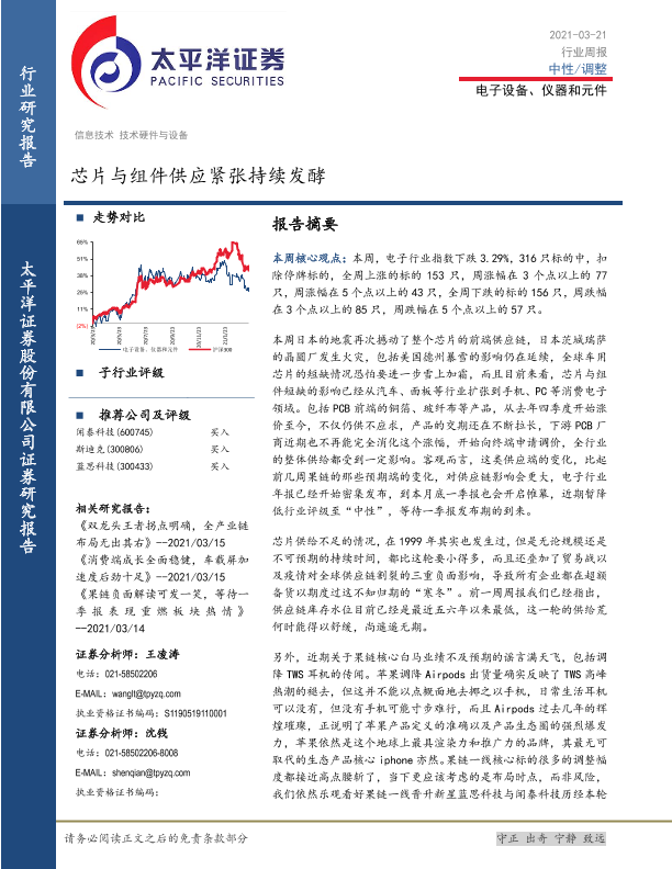 【太平洋证券】【20210321】电子设备、仪器和元件行业周报:芯片与组件供应紧张持续发酵-14页