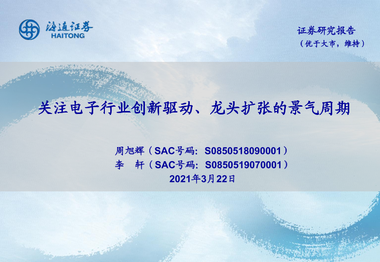 【海通证券】【20210322】电子元器件周报:关注电子行业创新驱动、龙头扩张的景气周期-11页
