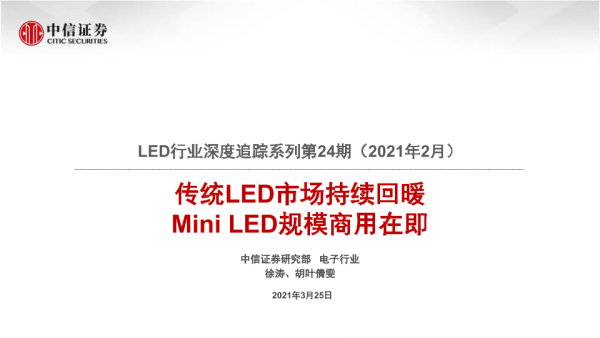 【中信证券】【20210325】20210325-中信证券-LED行业深度追踪系列第24期(2021年2月):传统LED市场持续回暖 Mini LED规模商用在即-21页