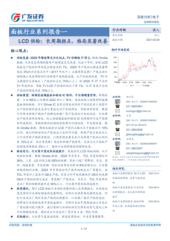 【广发证券】【20210329】面板行业系列报告一:LCD供给:长周期拐点,格局显著改善-17页