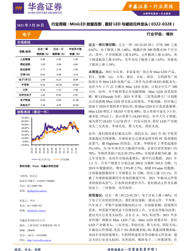 【华鑫证券】【20210330】电子行业周报:MiniLED放量在即,看好LED与被动元件龙头-15页