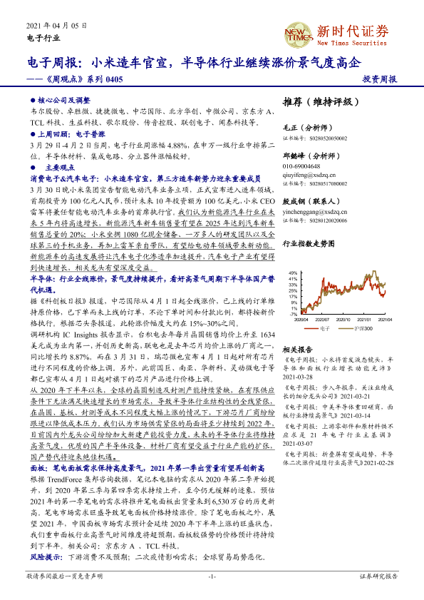 【新时代证券】【20210405】电子周报:小米造车官宣,半导体行业继续涨价景气度高企-19页