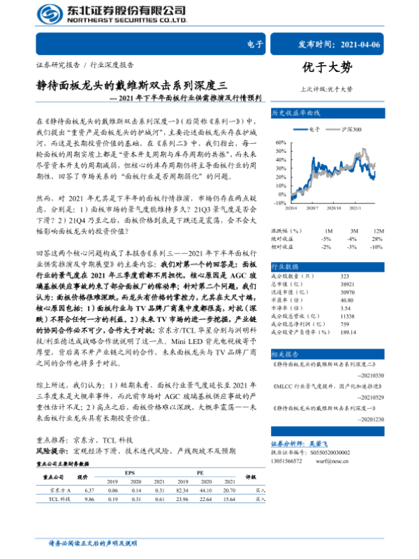【东北证券】【20210406】静待面板龙头的戴维斯双击系列深度三---2021年下半年面板行业供需推演及行情预判-44页