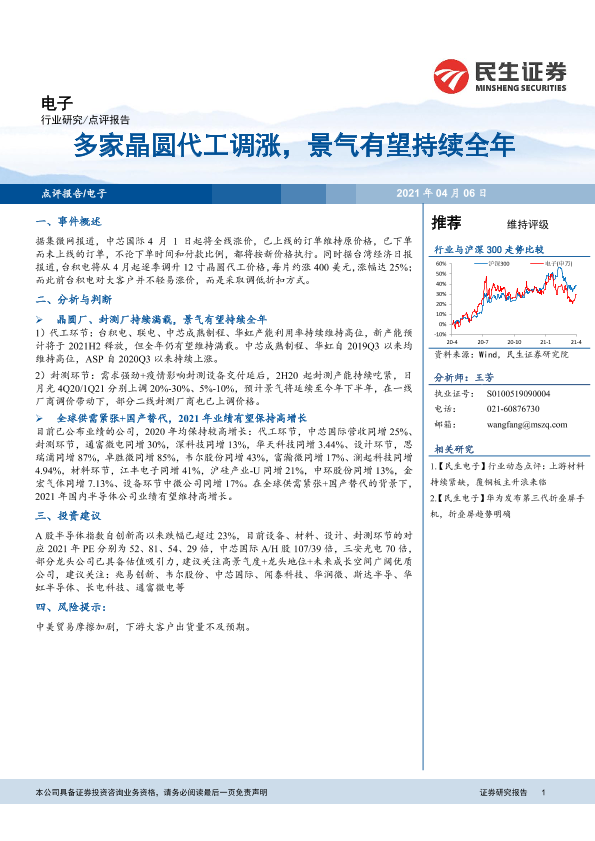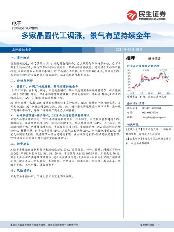【民生证券】【20210406】多家晶圆代工调涨,景气有望持续全年-4页