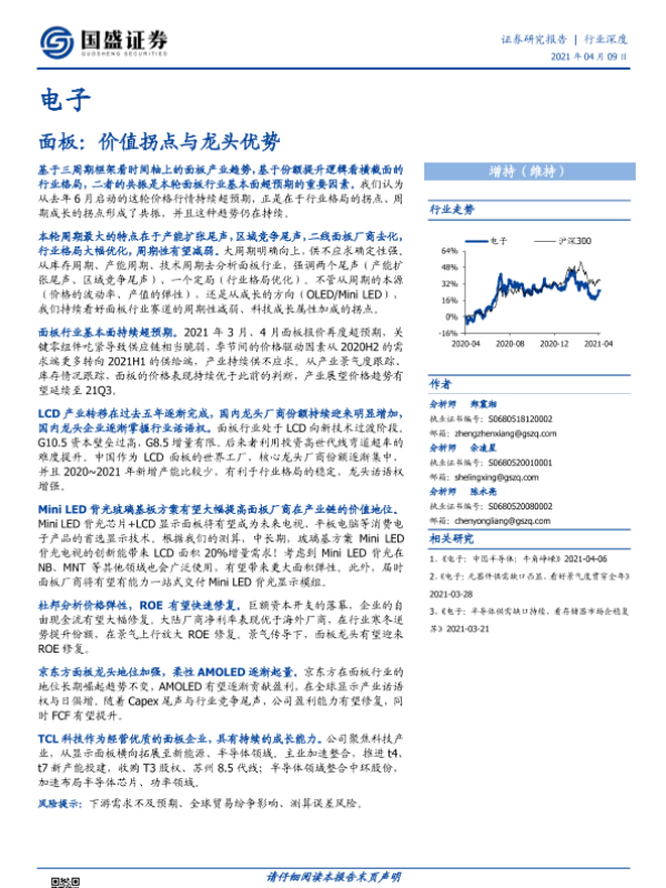 【国盛证券】【20210409】电子行业深度:面板:价值拐点与龙头优势-72页