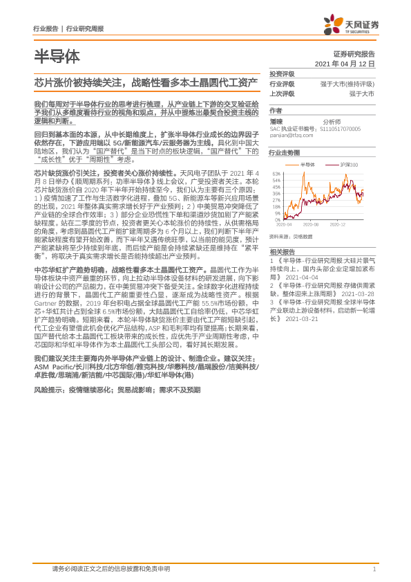【天风证券】【20210412】20210412-天风证券-半导体行业研究周报:芯片涨价被持续关注,战略性看多本土晶圆代工资产-7页