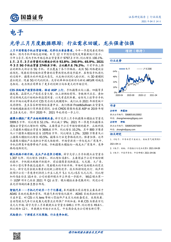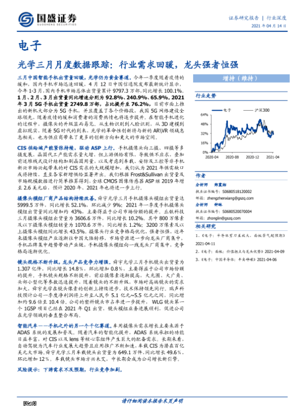【国盛证券】【20210414】电子光学三月月度数据跟踪:行业需求回暖,龙头强者恒强-19页