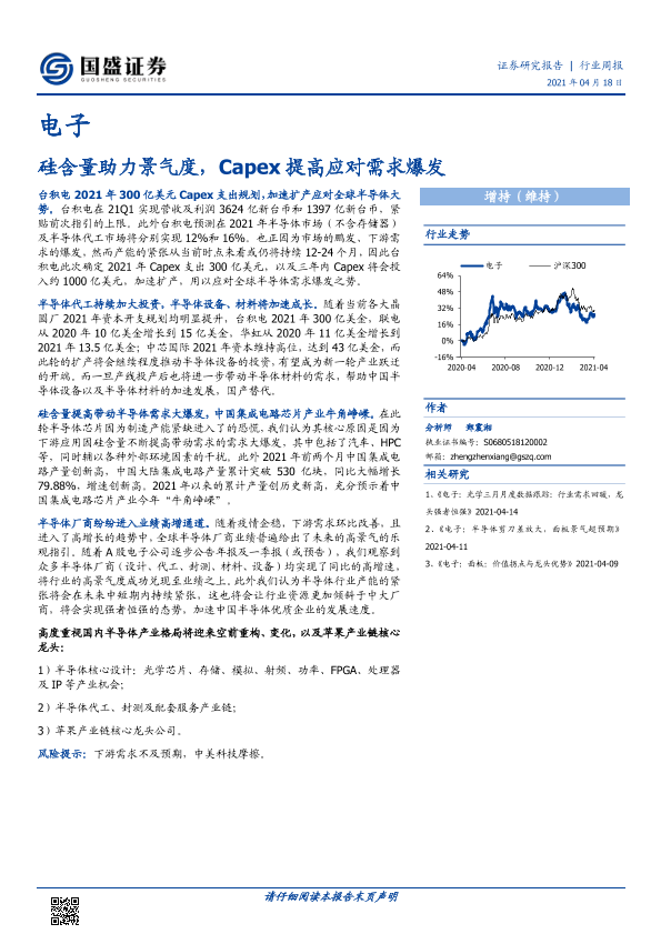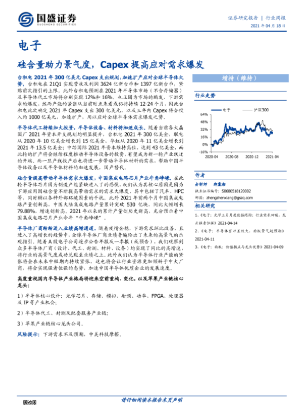 【国盛证券】【20210418】电子行业周报:硅含量助力景气度,Capex提高应对需求爆发-21页