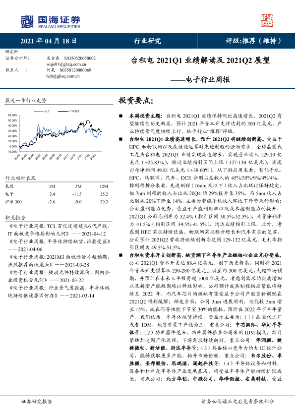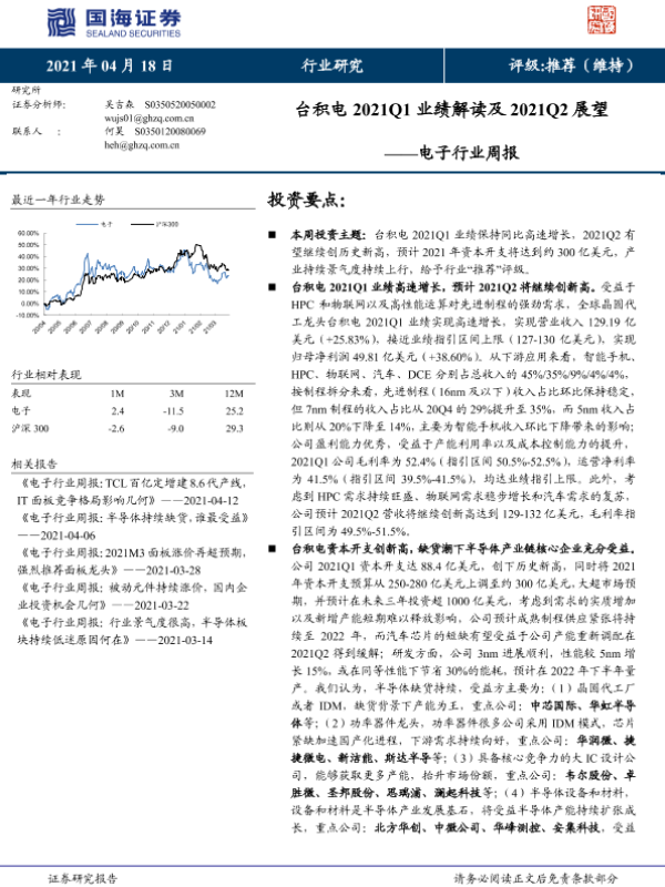 【国海证券】【20210418】20210418-国海证券-电子行业周报:台积电2021Q1业绩解读及2021Q2展望-24页
