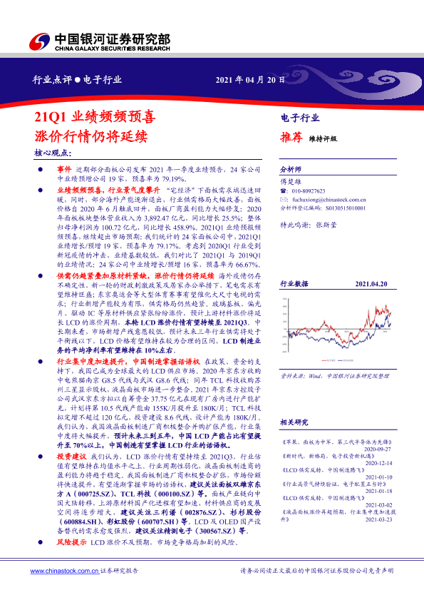 【银河证券】【20210420】21Q1业绩频频预喜 涨价行情仍将延续-7页