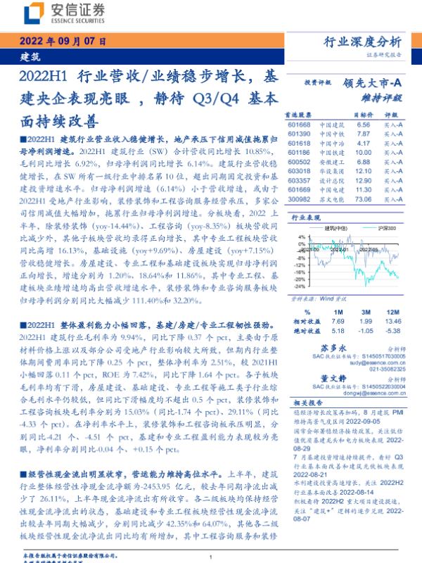 【安信证券】【20220907】建筑行业2022H1行业营收业绩稳步增长,基建央企表现亮眼,静待Q3Q4基本面持续改善-28页
