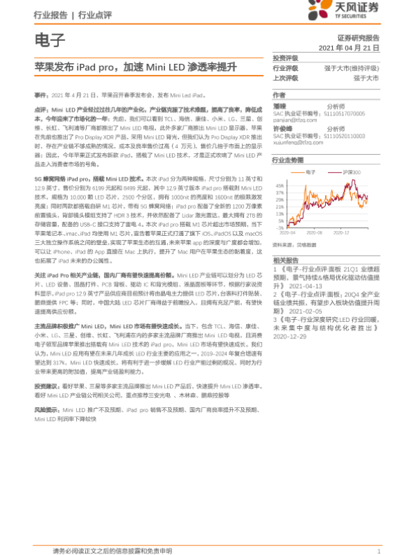 【天风证券】【20210421】苹果发布iPad pro,加速Mini LED渗透率提升-2页