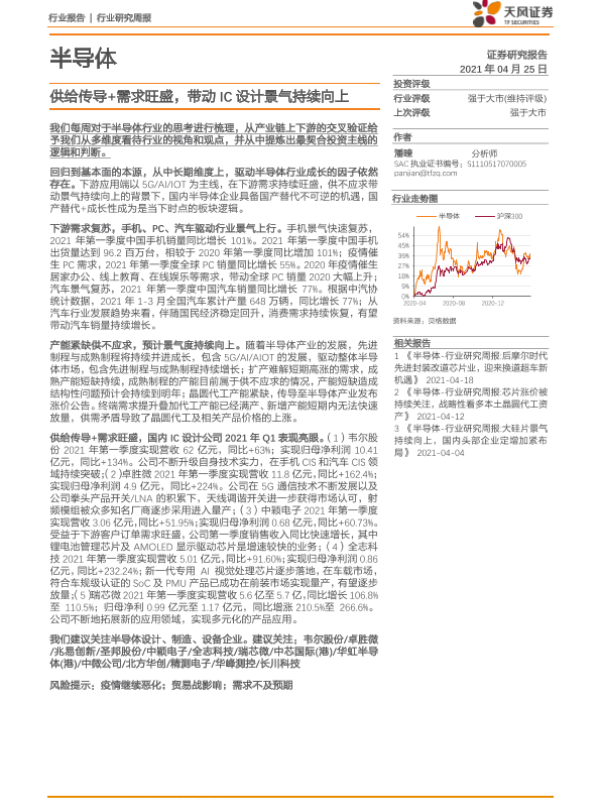 【天风证券】【20210425】20210425-天风证券-半导体行业研究周报:供给传导+需求旺盛,带动IC设计景气持续向上-8页
