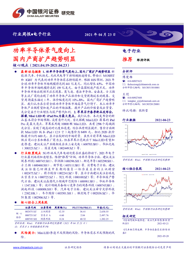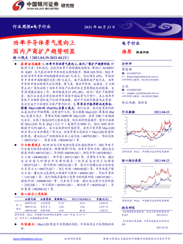 【银河证券】【20210423】电子行业周报:功率半导体景气度向上 国内产商扩产趋势明显-37页