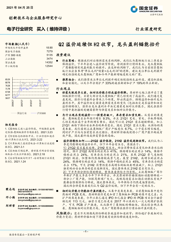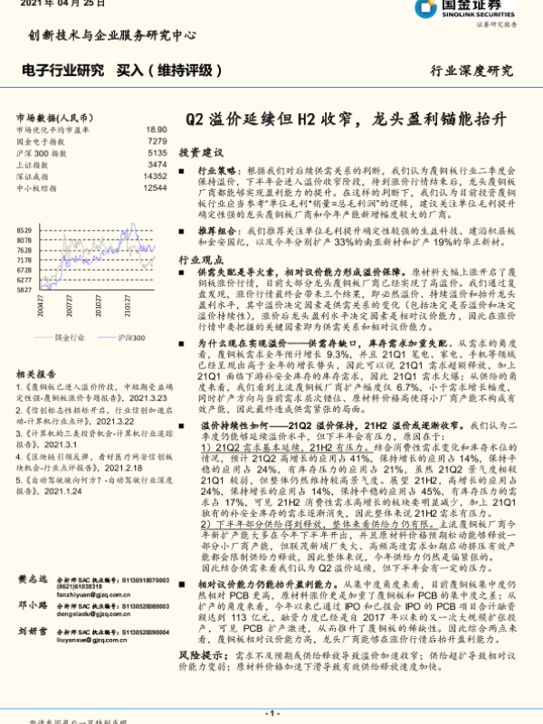 【国金证券】【20210425】20210425-国金证券-电子行业深度研究:Q2溢价延续但H2收窄,龙头盈利锚能抬升-36页