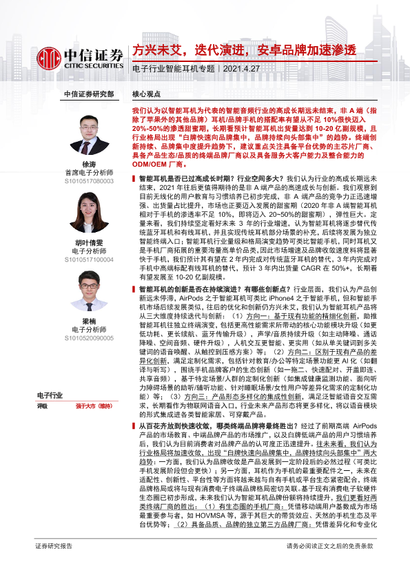 【中信证券】【20210427】电子行业智能耳机专题:方兴未艾,迭代演进,安卓品牌加速渗透-44页