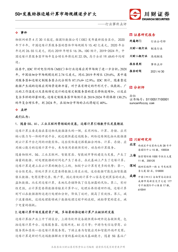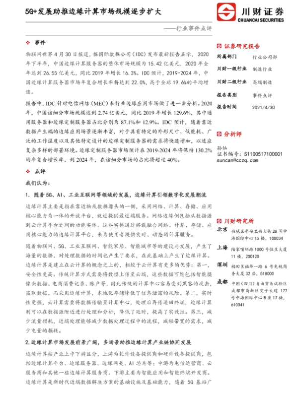 【川财证券】【20210430】高端制造行业事件点评:5G+发展助推边缘计算市场规模逐步扩大-3页
