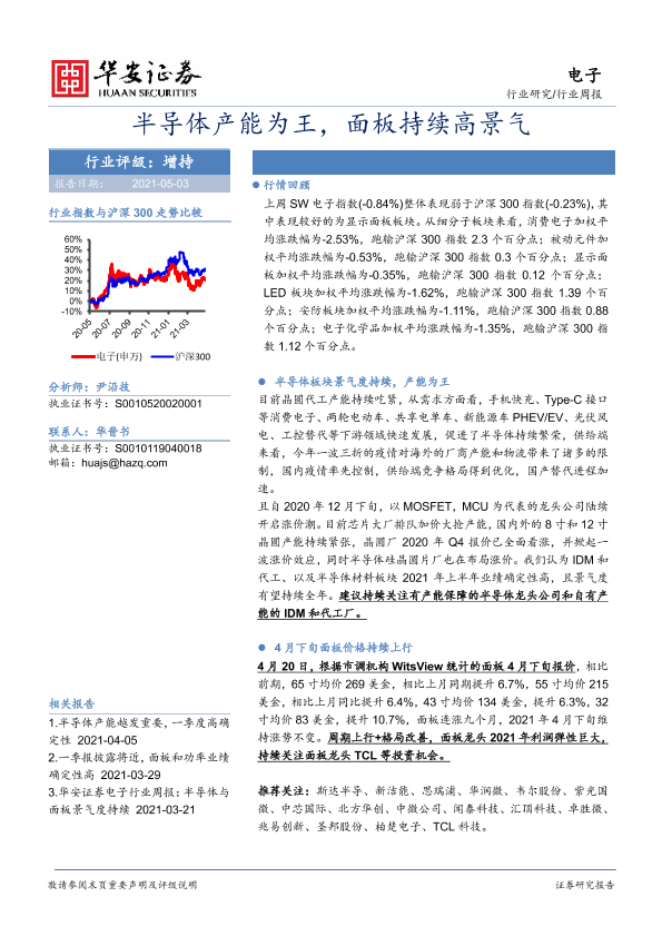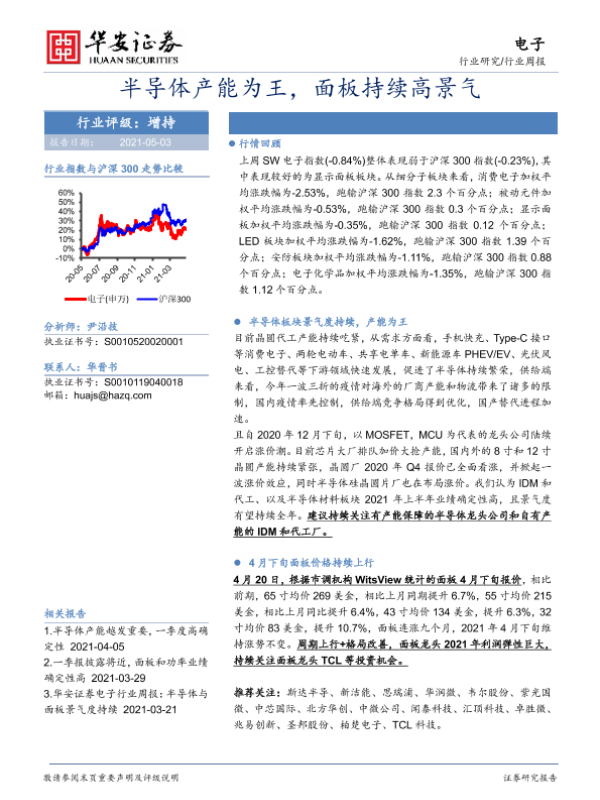 【华安证券】【20210503】20210503-华安证券-电子行业周报:半导体产能为王,面板持续高景气-29页