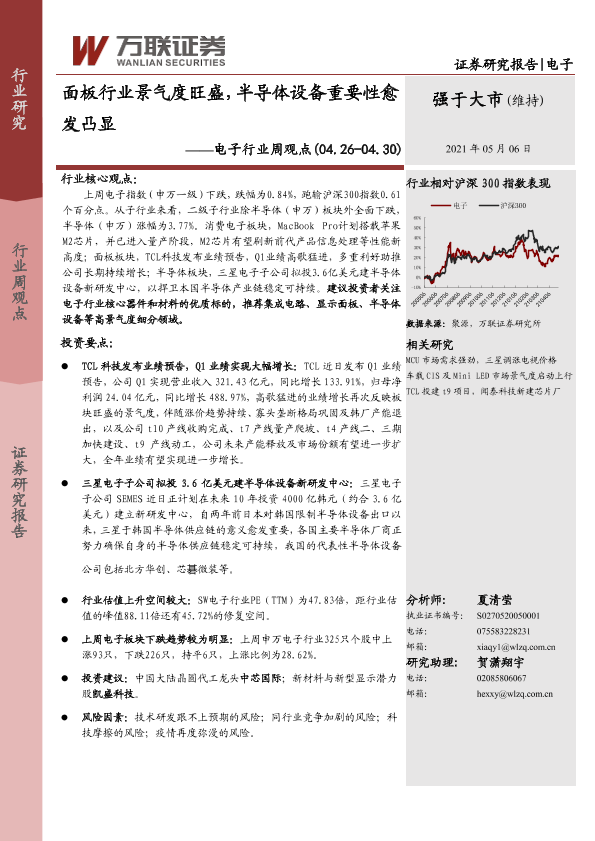 【万联证券】【20210506】20210506-万联证券-电子行业周观点:面板行业景气度旺盛,半导体设备重要性愈发凸显-14页