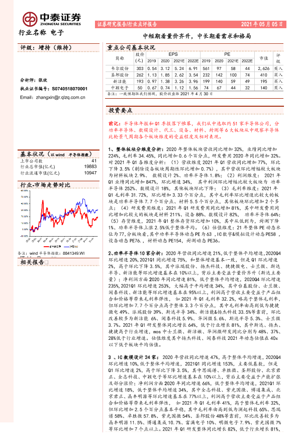 【中泰证券】【20210505】中泰证券-电子行业点评报告:中短期看量价齐升,中长期看需求和格局-4页