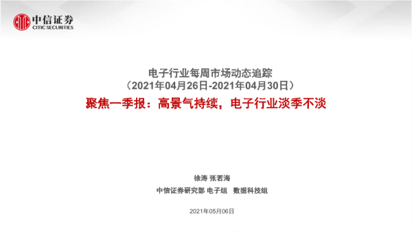 【中信证券】【20210506】20210506-中信证券-电子行业每周市场动态追踪:聚焦一季报:高景气持续,电子行业淡季不淡-21页