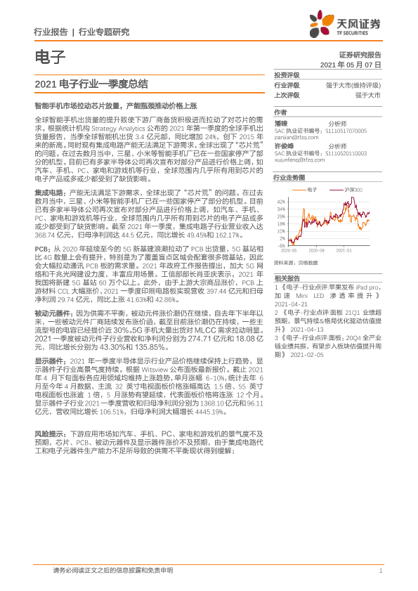 【天风证券】【20210507】2021电子行业一季度总结-17页