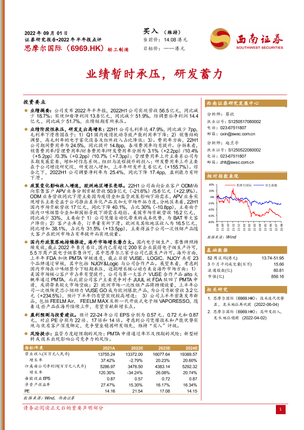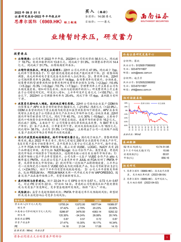 【西南证券】【20220901】思摩尔国际-6969.HK-业绩暂时承压,研发蓄力-5页
