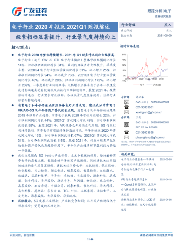 【广发证券】【20210509】电子行业2020年报及2021Q1财报综述:经营指标显著提升,行业景气度持续向上-44页