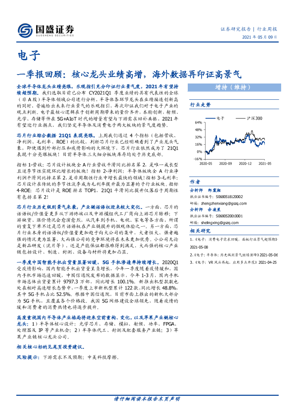 【国盛证券】【20210509】电子行业周报-一季报回顾:核心龙头业绩高增,海外数据再印证高景气-45页