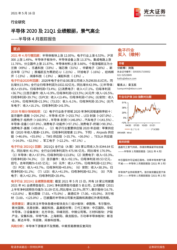 【光大证券】【20210516】半导体4月跟踪报告:半导体2020及21Q1业绩靓丽,景气高企-17页
