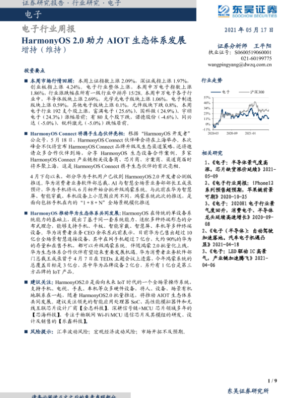 【东吴证券】【20210517】电子行业周报:HarmonyOS2.0助力AIOT生态体系发展-9页