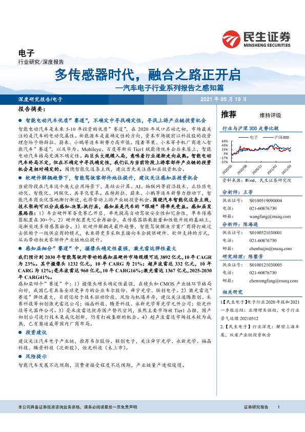 【民生证券】【20210519】20210519-民生证券-汽车电子行业系列报告之感知篇:多传感器时代,融合之路正开启-42页