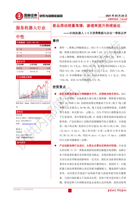 【国融证券】【20210520】扫地机器人1-4月消费数据与企业一季报点评:新品推动销量高增,渗透率提升持续验证-3页