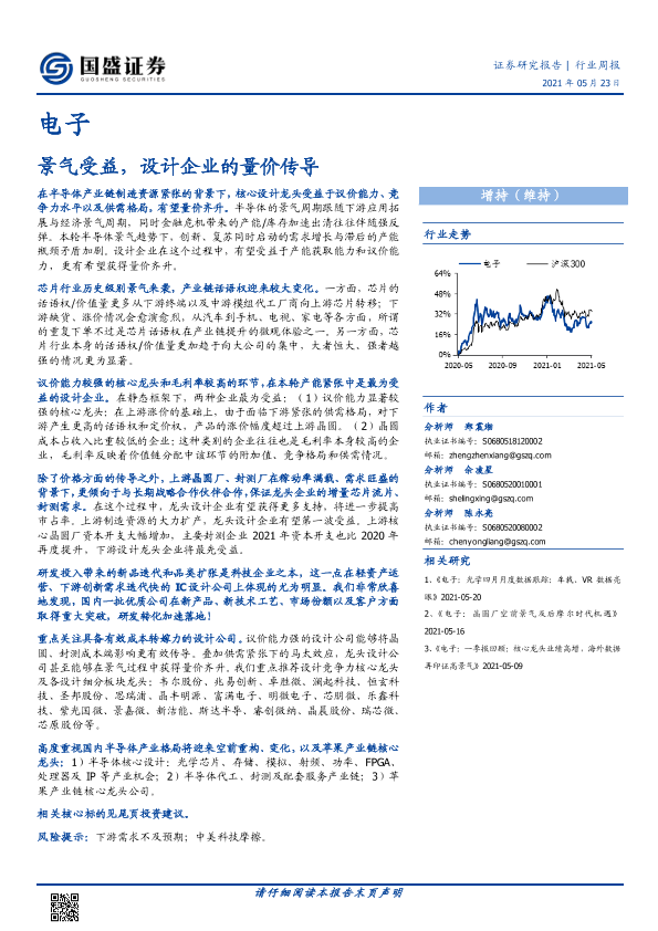 【国盛证券】【20210523】电子行业周报:景气受益,设计企业的量价传导-16页
