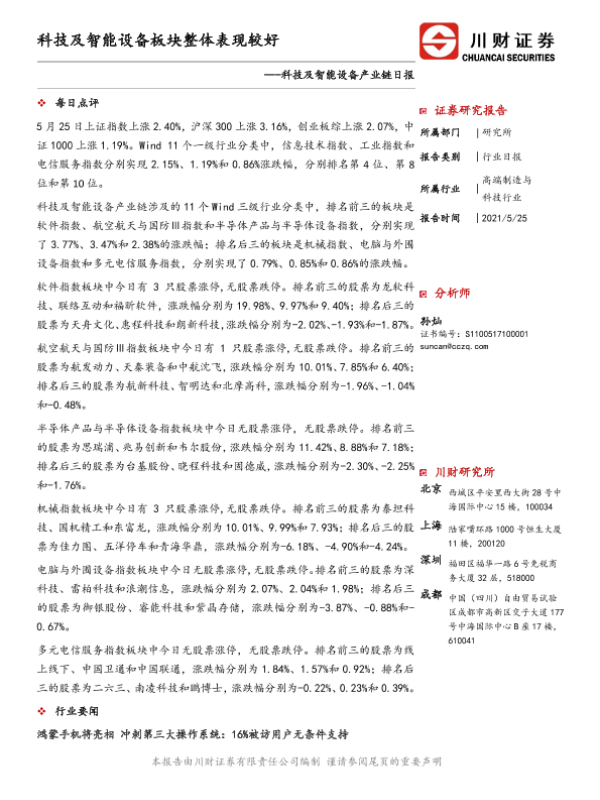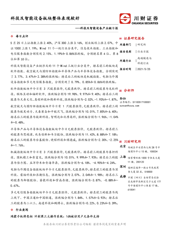 【川财证券】【20210525】科技及智能设备产业链日报:科技及智能设备板块整体表现较好-7页