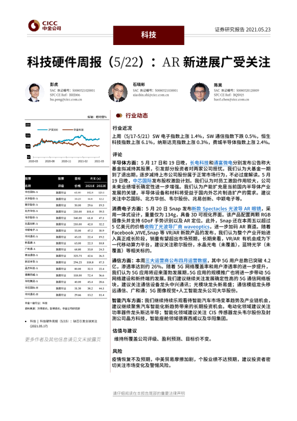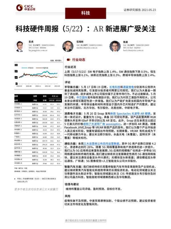 【中金公司】【20210523】科技硬件周报:AR新进展广受关注-16页
