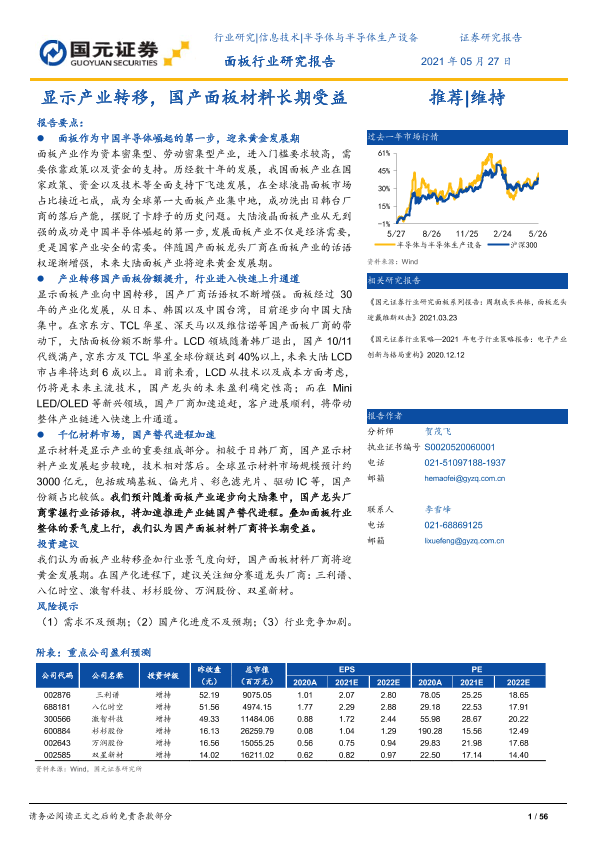 【国元证券】【20210527】面板行业研究报告:显示产业转移,国产面板材料长期受益-56页