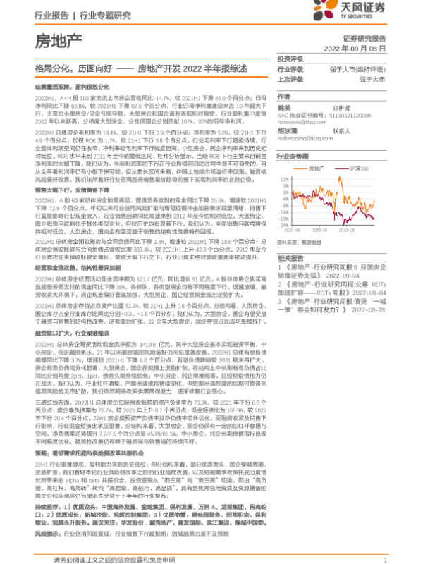 【天风证券】【20220908】房地产开发行业2022半年报综述:格局分化,历困向好-21页
