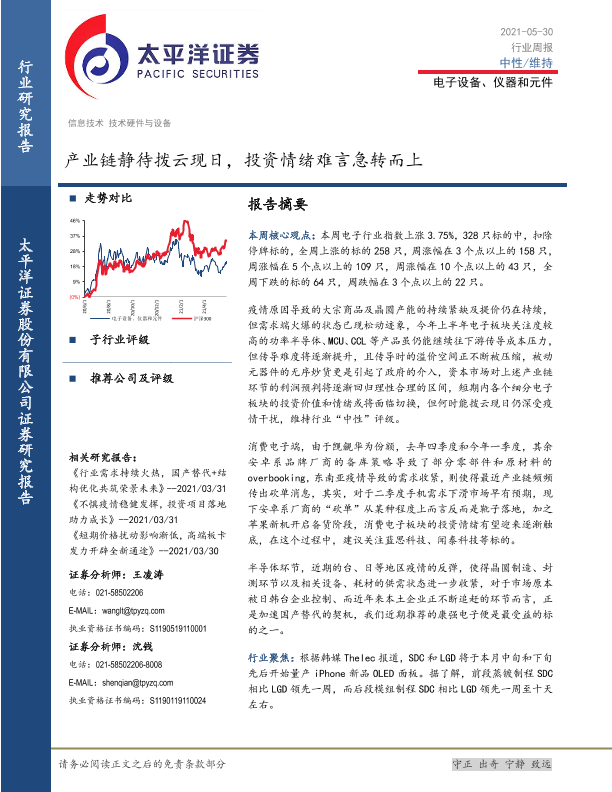 【太平洋证券】【20210530】20210530-太平洋-电子设备、仪器和元件行业周报:产业链静待拨云现日,投资情绪难言急转而上-14页