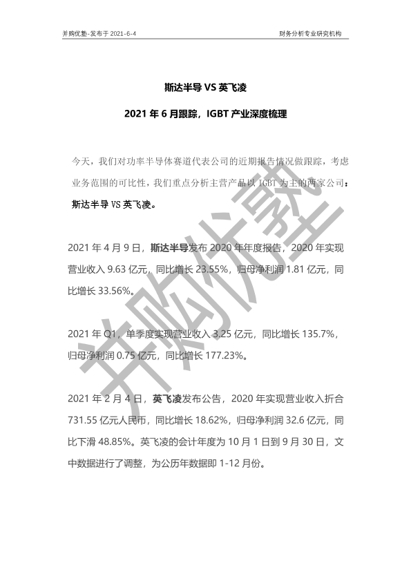 【并购优塾】【20210604】斯达半导VS英飞凌:2021年6月跟踪,IGBT产业深度梳理-24页