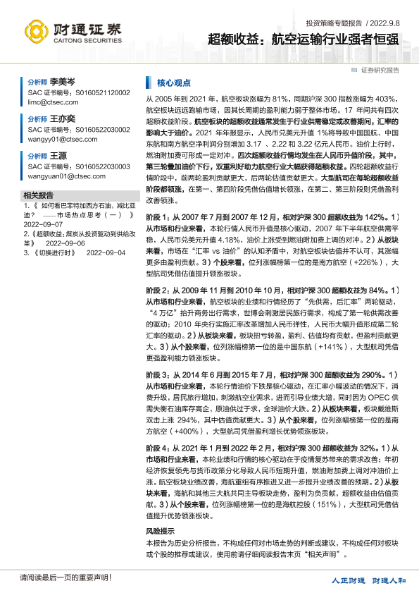 【财通证券】【20220908】投资策略专题报告:超额收益,航空运输行业强者恒强-38页