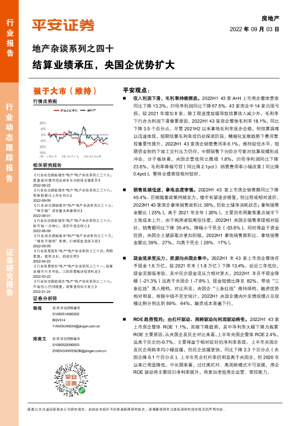 【平安证券】【20220903】房地产行业地产杂谈系列之四十:结算业绩承压,央国企优势扩大-19页