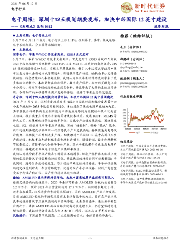 【新时代证券】【20210612】电子周报:深圳十四五规划纲要发布,加快中芯国际12英寸建设-21页