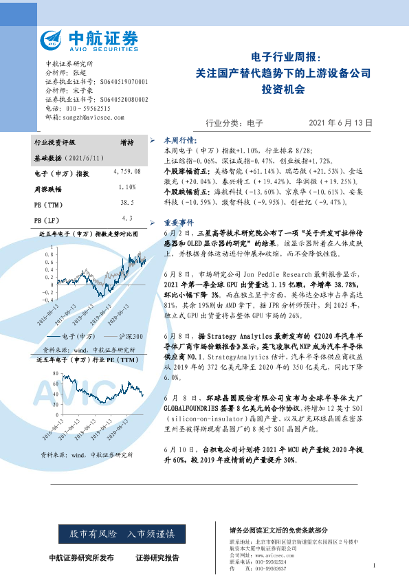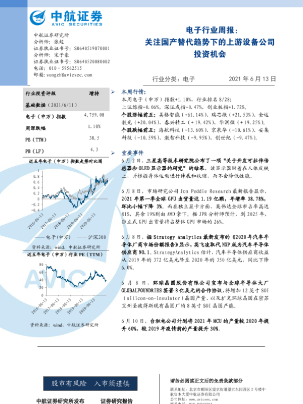 【中航证券】【20210613】20210613-中航证券-电子行业周报:关注国产替代趋势下的上游设备公司投资机会-9页