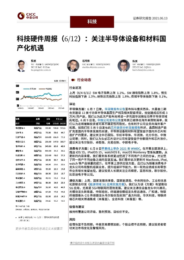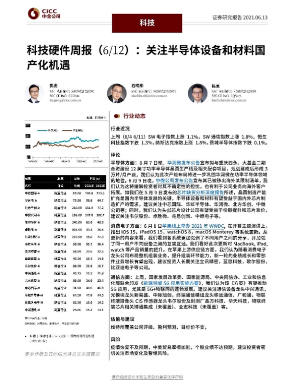 【中金公司】【20210613】科技硬件周报:关注半导体设备和材料国产化机遇-15页